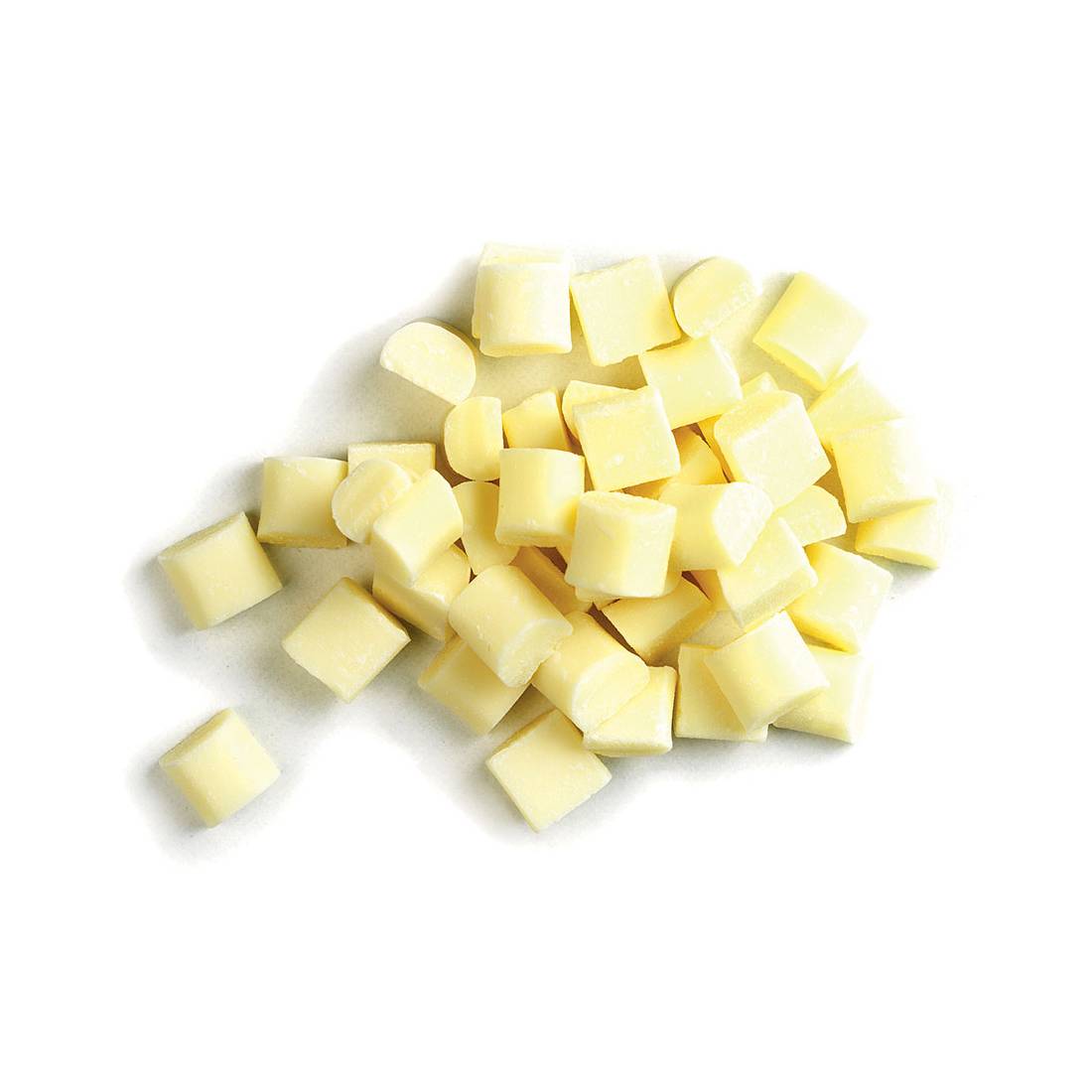 Delizioso cioccolato bianco belga in formato "chunks" che contengono meno burro di cacao idonei quindi a resistere a temperature fino a 200 °C I chunks non si sciolgono completamente durante la cottura e pertanto sono ideali per chi realizza preparazioni da forno dove si vuole che si veda anche dopo la cottura la consistenza del pezzettone di cioccolato